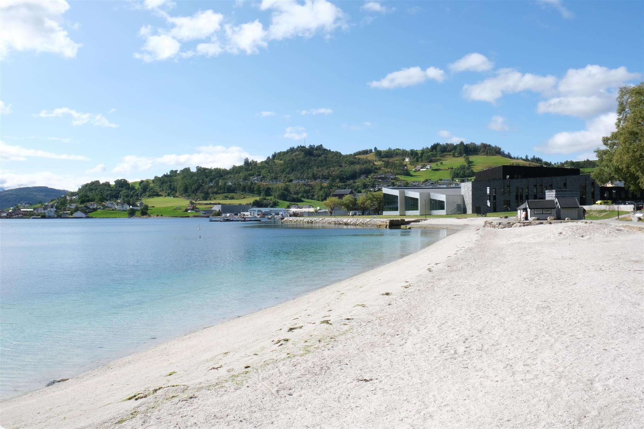 Ligg midt i Øystese sentrum. Fin sandstrand som er godt eigna for born. Toalett. Bra med parkering. Tilgjengeleg med buss, sykkel og for gåande. Vert drifta av Kvam herad.