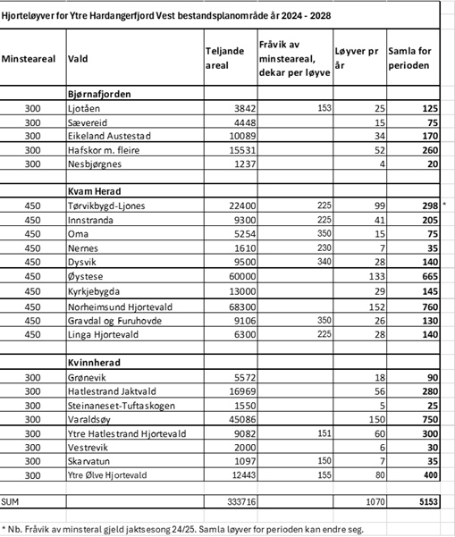 Årsleveområde for hjort i Ytre Hardangerfjord VestVald og fellingsløyve i setnadsplanområdet